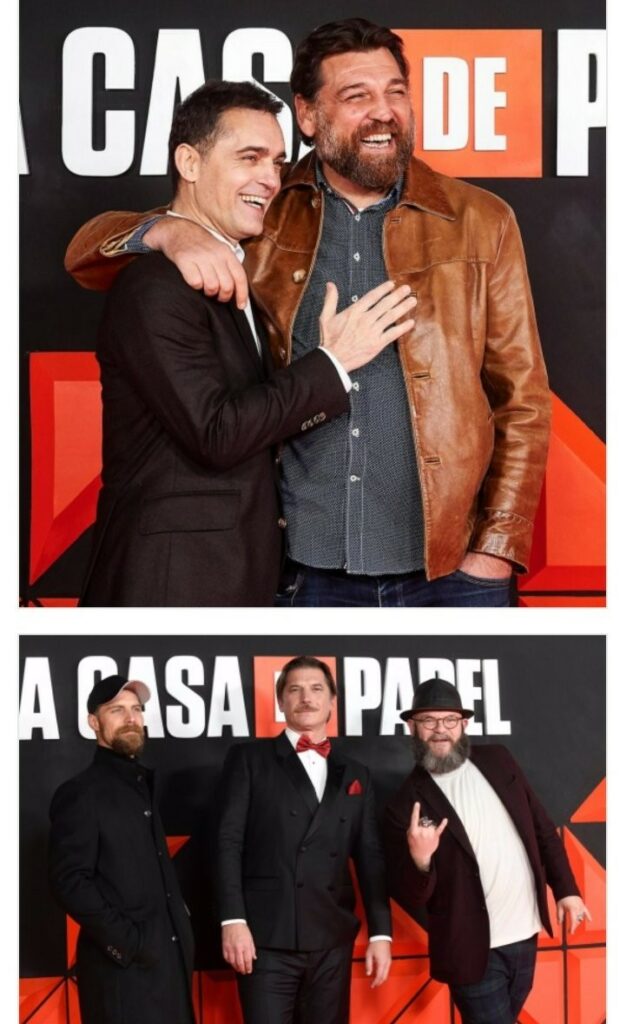 Професор (Алваро Морте), Лисабон (Ицар Итуньо), Токио (Урсула Корберо), Рио (Мигел Еран), Хелзинки (Дарко Перич), Берлин (Педро Алонсо), Денвър (Хайме Лоренте), Осло (Радко Морак) Августин Рамос) , Стокхолм (Естер Асебо) ... отговорниците за двата обира очароваха на церемонията и получиха бурни аплодисменти.