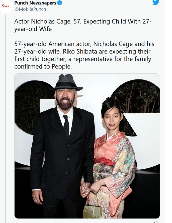 Никълъс Кейдж е на 57 години. Съпругата му Рико Шибата е на 27 години. От предишните си връзки той има двама сина - Уестън Копола, който е на 31 години, и Кал-Ел Копола, на 16 години.