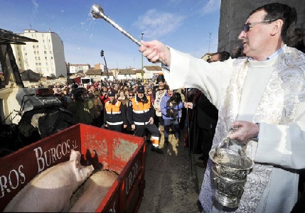 Светецът се смята и за покровител на животните, затова в Испания прескачат огън с коне и ръсят четириногите със светена вода