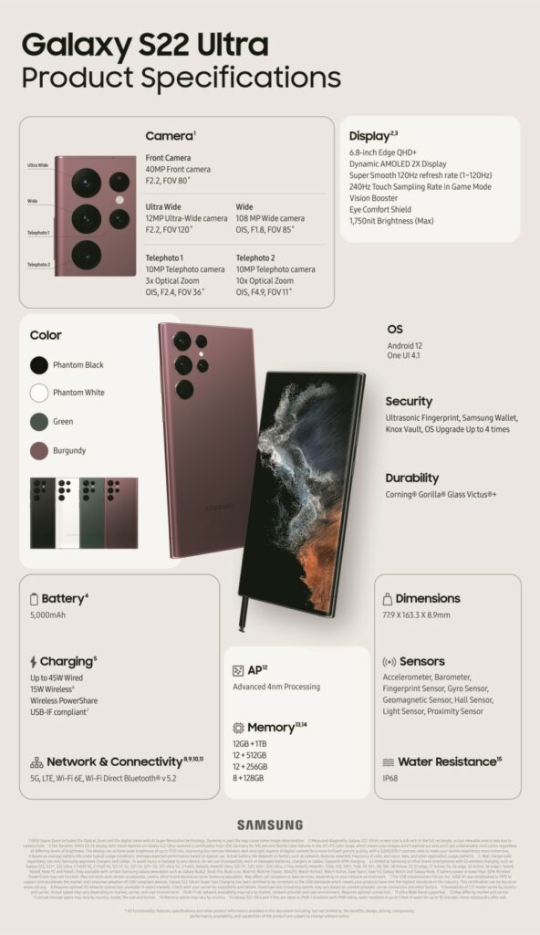 Конфигурацията на Samsung Galaxy S22 Ultra се базира на произведения по 4-нанометров процес чипсет Exynos 2200 с графичен чип, съвместно разработен с AMD, който обещава разбиваща производителност подходяща и за най-тегавите игри.