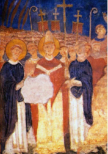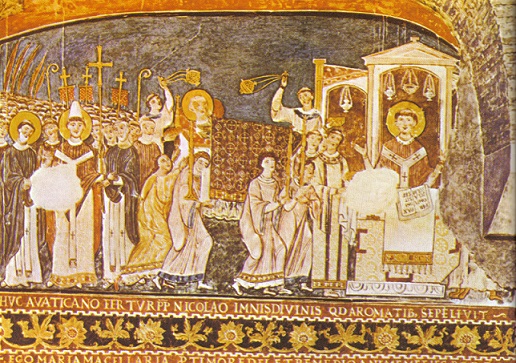 Стенопис от IX в. в базиликата "Сан Клементе" в Рим