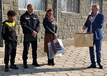 „Предполагам, че точно затова Исус е искал да предаде портфейла на инспектор Георгиева. Пожелавам му да бъде все такъв, защото в тези трудни времена една човешка постъпка, особено от момче от такова семейство, наистина е забележителна“, коментира старши комисар Калоян Калоянов, който лично връчи грамота и подаръци на Исус на тържество в двора на училището в Айтос.