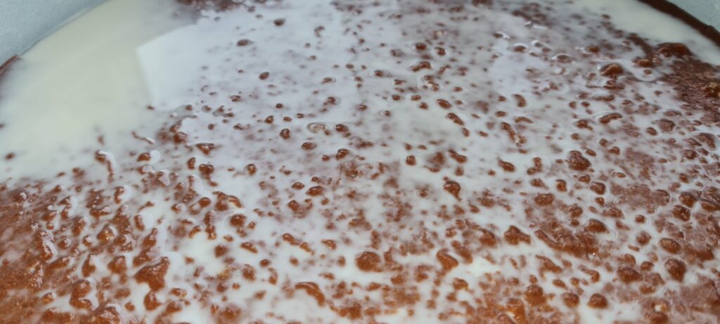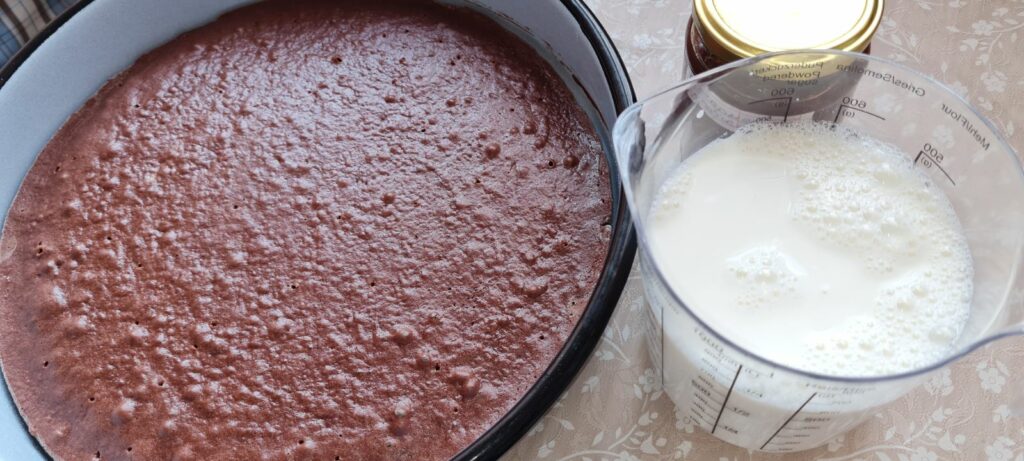 За сиропа: млякото и захарта се поставят на огъня, за да се разтопи захарта, а сиропът да стане горещ