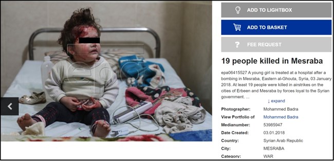 Екипът за проверка на факти достигна до оригиналната снимка, която е на Европейската агенция за фотожурналистика (EPA) и под която има описание „Момиче получава лечение в болница след обстрел в Месраба, Източна Гута, Сирия, на 3 януари 2018 г. Най-малко 19 души бяха убити при въздушни удари с градовете Ирбин и Месраба от сили, лоялни на сирийското правителство“. Направена е от фотожурналистът на EPA - Мохамед Бадра.