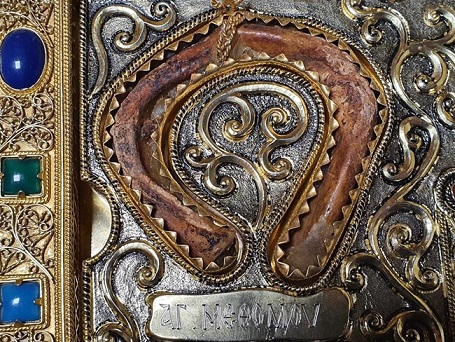 Става дума за част от ръката на свети Кирил Български и част от ребрата на свети Методий Моравски, както и на малка частица от Светия Кръст Господен. Те са собственост и се съхраняват Есфигменската света обител, в столицата на монашеската република, Карея. Донесени са в България от Негово Високопреподобие архимандрит Вартоломей - игумен на споменатия манастир.