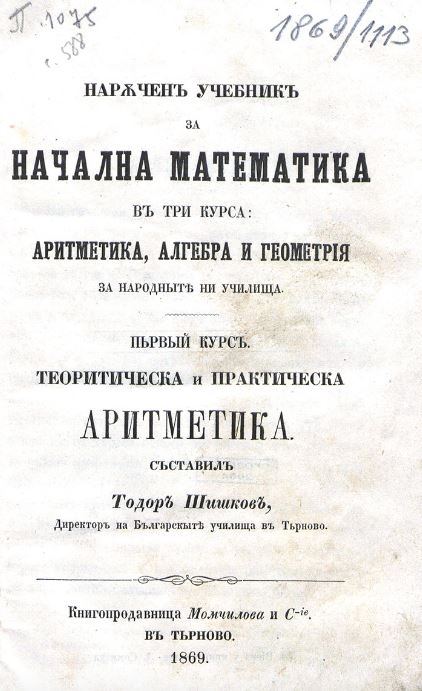- 1869 – „Наръчен учебник на начална математика в три курса; аритметика, алгебра и геометрия за народните ни училища“ (Търново)