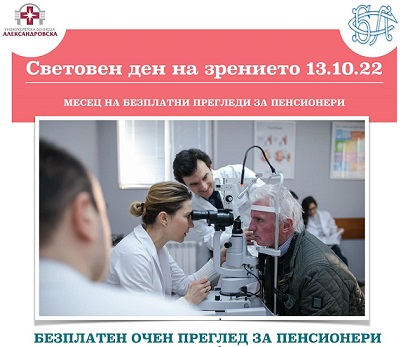 Прегледите са по повод Световния ден на зрението, който е на 13-ти октомври и се организират от Българското Дружество по Детска офталмология, Невроофталмология и Офталмогенетика, Българският лекарски съюз, Клиниката по очни болести на УМБАЛ „Александровска“ в партньорство с благотворителната инициатива “Българската Коледа”.