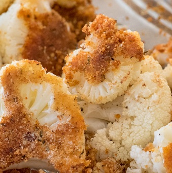 Карфиол на фурна за вегани: Главата карфиол се разделя на „розички”. Накисват се за 15-20 минути във вода с 3-4 лъжици оцет. Водата трябва да ги покрие. Така зеленчукът се дезинфекцира, но и придобива по-пикантен вкус. Измиват се, отцеждат се и се попиват кухненска хартия. Полагат се в тава, покрита с кухненска хартия. Върху всяка „розичка” се сипва малко зехтин, шарлан или олио, според вкуса. Посоляват се, слага се черен пипер и кимион на вкус. Пекат се докато омекнат. По желание след изпичане може да се добави някакъв сос, според вкуса.