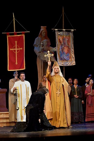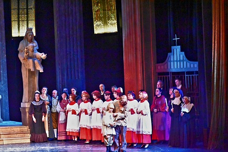 Като избягалия затворник Чезаре Анджелоти и бивш консул на някогашната свободна Римска република на сцената излиза басът Диман Панчев. Чудесен е целият артистичен състав – в образите на Клисаря и Тъмничаря влиза Костадин Мечков, бас, Сполета, полицейски агент, ще бъде тенорът Яни Николов, Шароне – басът Петър Тихолов, Тъмничар – Иван Грозев, Овчарче – Стефка Христозова. В спектакъла участват оркестърът и хорът на Държавна опера – Бургас, както и прекрасните певци от Детски хор "Милка Стоева" с диригент Светла Стоева. Хоровата формация наскоро чества 75-годишнина от създаването си на сцената на Операта. Младите хористи традиционно се представят успешно в различни прояви на бургаския културен институт.