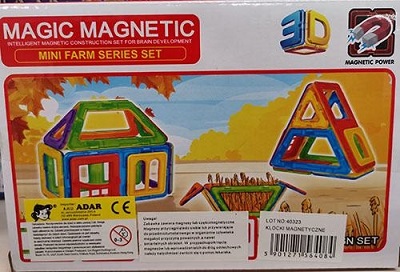 Спряна от продажба е и детска игра мини ферма, която се състои от поставени в картонена кутия 12 елемента, от които детето може да направи различни постройки. Рискът при нея е, че материалът лесно се разпада на малки части с висок магнитен поток.