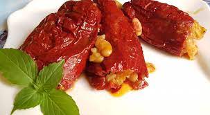 Рецептата за пълнени чушки с боб е типичен представител на българската национална кухня, като съчетава два много характерни за нашата трапеза продукта – сушени червени чушки и боб. Това ястие типично за българската национална кухня. То е особено популярно в Северозападна България, като там някои домакини към боба за пълнене добавят и смлени или счукани орехи.