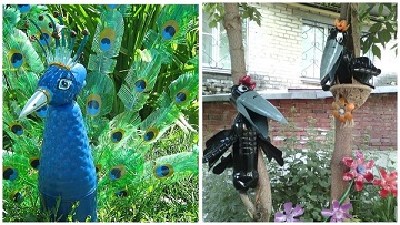 От бутилки можете да си направите птици и зверчета за украса в градината. Отдайте се изцяло на фантазиите си. Ние ви посочваме само няколко мостри.