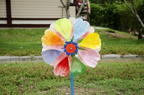 Colorful pinwheel and windmill toy made from plastic bottle recycle