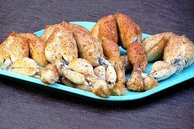 Продукти: жабешки бутчета – 900 г, сол – 70 г, зехтин – 80 мл, сухи подправки на вкус – 30 грама.