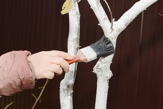 След почистването идва ред на есенното варосване. Той е необходимо не само за унищожаване на бактерии и спори, но и за защита на кората от опасното зимно слънце. То може да бъде заменено само чрез обвиване на ствола със специално защитно влакно. При младите дървета трябва да се погрижите не само за щетите от замръзване, но и за защита на стволовете и скелетните издънки от гризачи и зайци (с мрежа, тръстика, смърчови клони, покривен филц и др.).