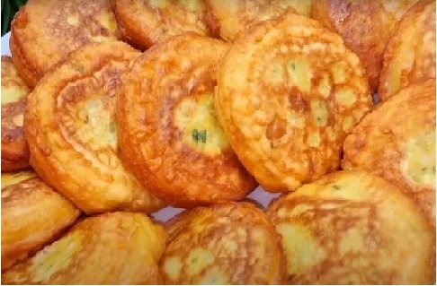 За тестото смесваме сода в киселото мляко. Добавяме солта, яйцата и разбиваме до еднородна смес. Сипваме брашното и размесваме до гъста контистенция. Ако брашното е малко, сложете още. Всяко кюфтенце пускаме в тази смес и пържим в сгорещено олио в тиган. Пирожките се пържат и от двете страни.