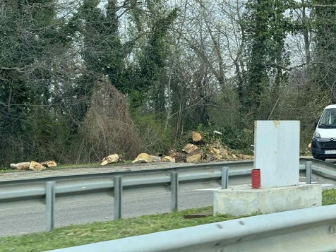 Дърво падна върху бус с арестанти на бул. „Цариградско шосе” в района на парка „Врана” в петък следобед. До късно вечерта нарязани трупи от него има както от страна на тротоара, където е разположен парка на двореца, така и по средата на мантинелата, която разделя булеварда на две части.