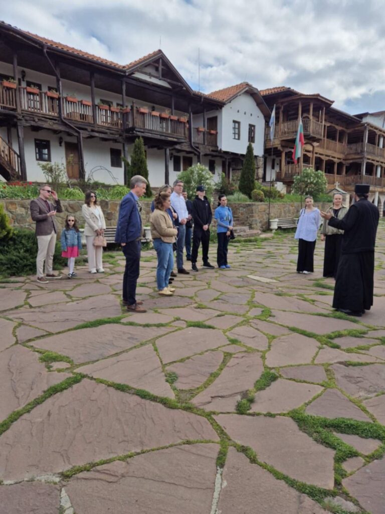 Гостите имаха възможност да научат за историята на възстановяване на духовната обител след политическия преход в България през 1989 г., както и да разгледат експозицията от стари икони, които се съхраняват в манастира.