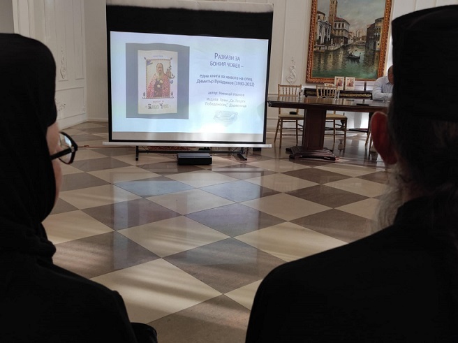 Представянето на „Разкази за Божия човек“ бе тази вечер в резиденция „Тера“ в София. По време на събитие бе презентиран и проектът на бъдещия храм „Възнесение Христово“ в комплекс „Младост 1“, който попадаше в енорията „Свети Георги“ в квартал „Дървеница“, оглавявана десетилетия наред от отец Димитър Вукадинов до самата му кончина.