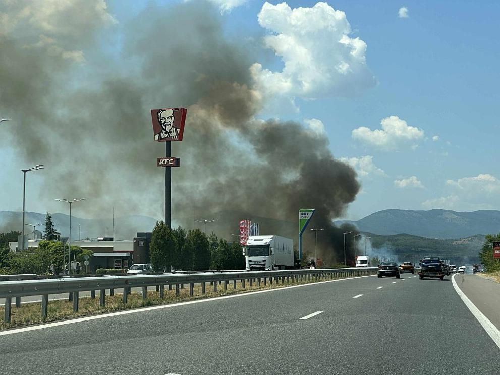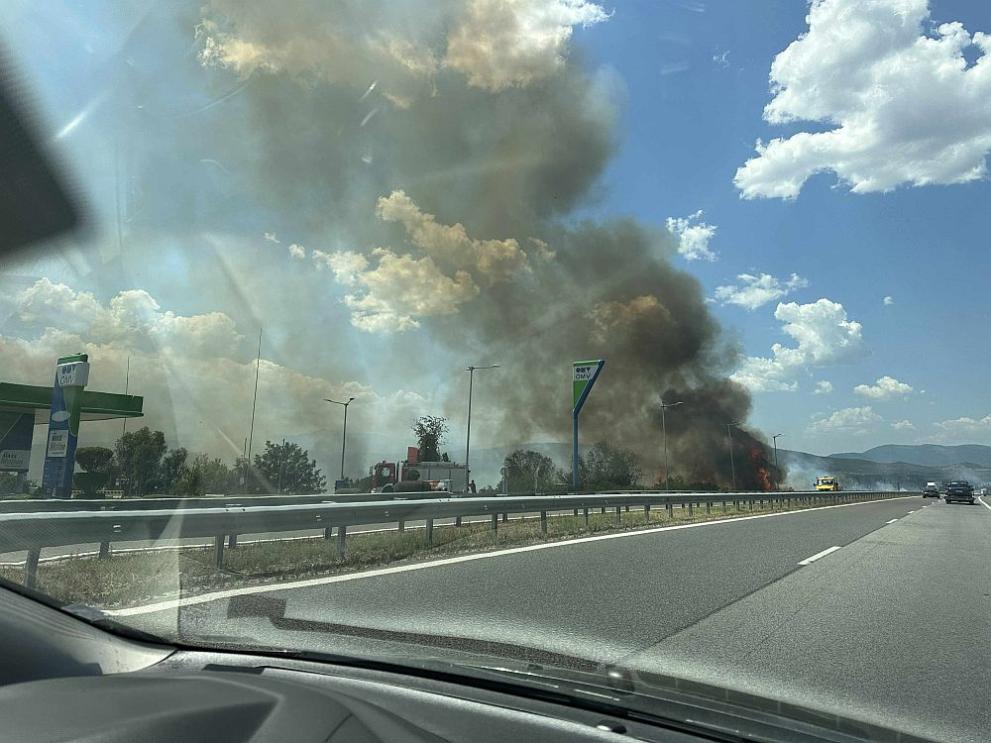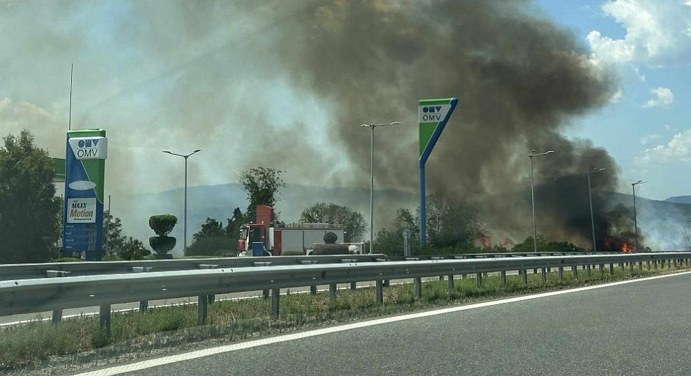 По-рано днес първо Dariknews.bg съобщи, цитирайки свой източник, за разгарящ се голям пожар на 73-ти км на магистрала "Тракия" в посока Бургас, в опасна близост до бензиностанция и заведение за бързо хранене.