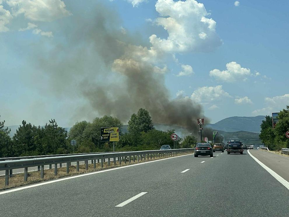 Междувременно горят сухи треви на автомагистрала "Тракия" в посока Бургас и в близост до сливенското село Скобелево. Това съобщи за БТА говорителят на областната полиция в Сливен Първолета Мандинска.