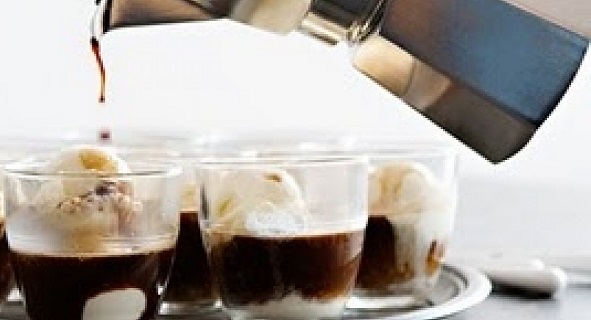 То е изключително вткусно, но не е за тези, които са се сложили на диета през лятото, тъй като е със сладолед. Приготвя ще 1 шоп горещо еспресо Сложете топла сладолед в чаша, която не е от тънко стъкло. Залейте с голещото кафе. Контрастът между топло и студено прави вктусът неповторим. Можете да си направите и ледено кафе (инстант със студена вода, може и газирана), като му добави кондензирано мляко.