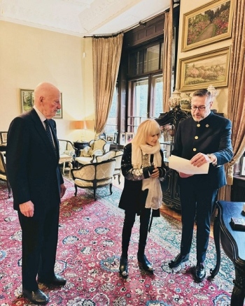 „Благодаря на Н.В. Цар Симеон II за поканата да бъда гост в дома му в двореца “Врана” и за оказаната ми чест! От цялото си сърце пожелавам на Него и на Царското семейство здраве, щастие и много, много успехи!“, отбеляза тя в социлната мрежа.